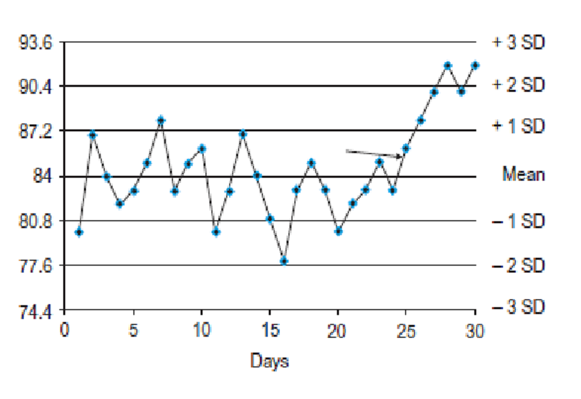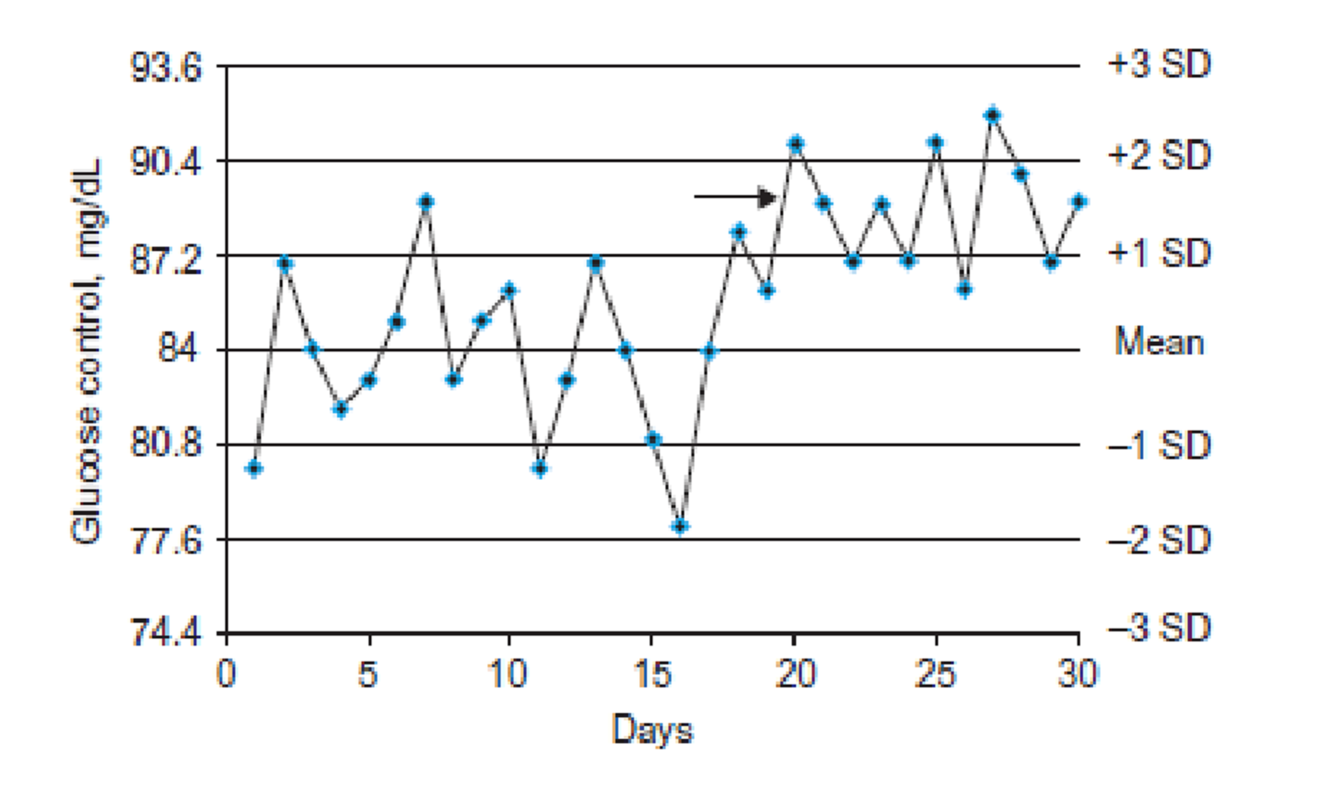 4 consecutive controls exceeding +1 SD or -1SD Reject run Systematic