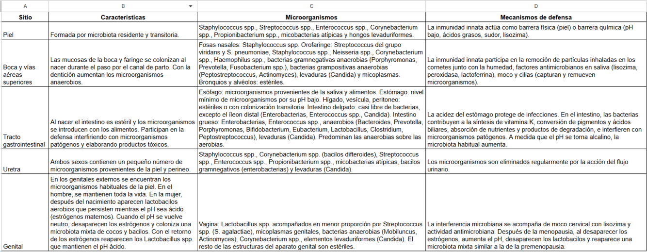 -Residente: microorganismos cuya presencia no causa respuestas clínicas ni inmunes y se mantiene estable por un largo período de tiempo.