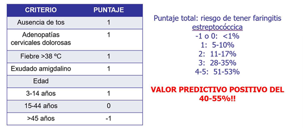 Como se realiza el puntaje de riesgo de tener faringitis estreptocóccica?