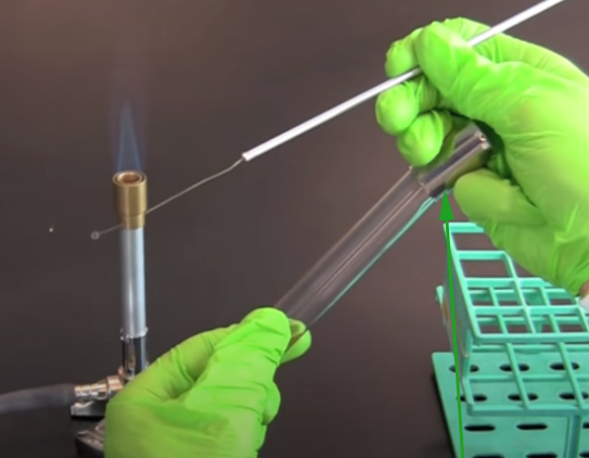 Before transferring the bacteria from the petri dish into the test tube, it is important to place the inoculation tool under the flame one more time.