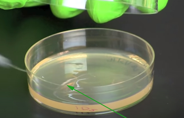 What is being spread out over this petri dish?