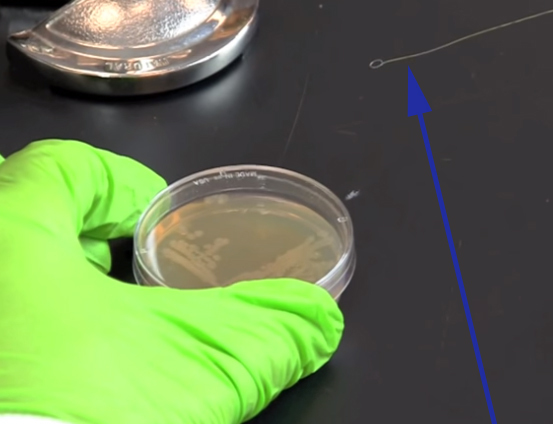 Before transferring the bacteria from the petri dish into the test tube, it is important to place the inoculation tool under the flame one more time.