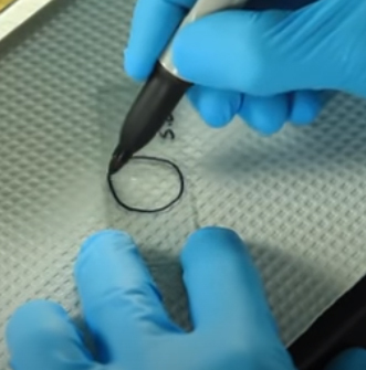 It is important to completely fill the circle here with the mixture of water and bacteria.