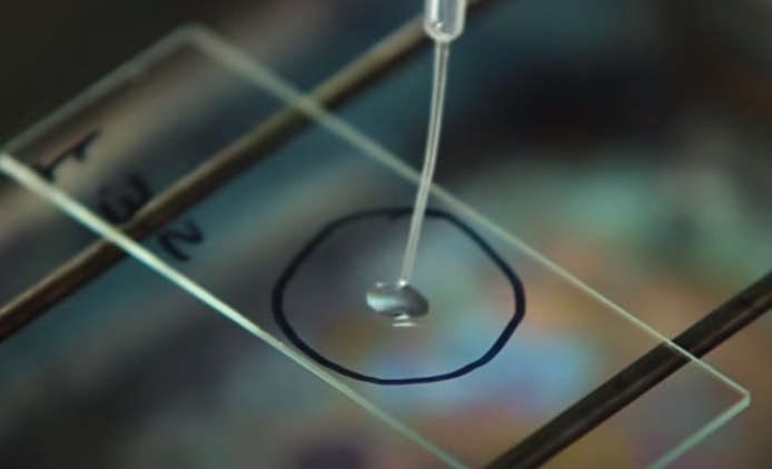 What is being placed on the slide?