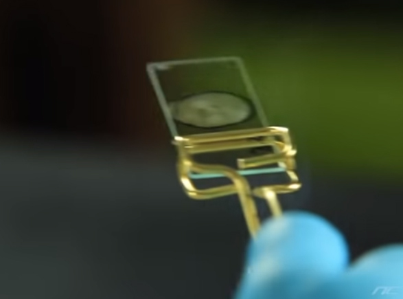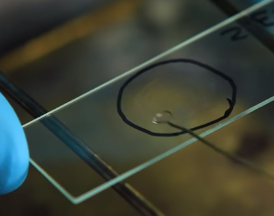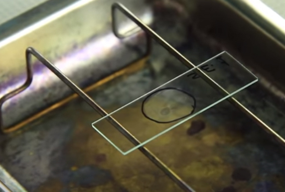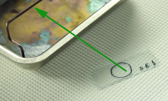 What is being placed on the slide?