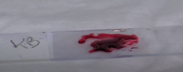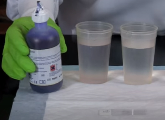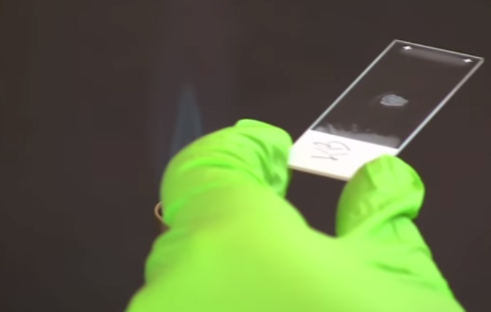 How long does Safranin need to stay on the slide in order to stain the bacteria?