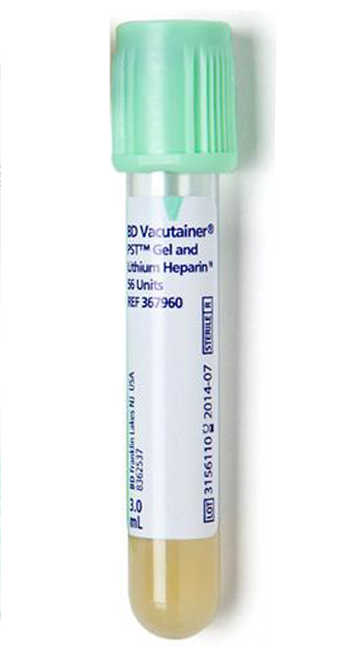 Sodium Heparin or Lithium Heparin - PST = Plasma Separator Tube. Fibrinogen separates out the plasma. Heparin is used as an anticoagulant