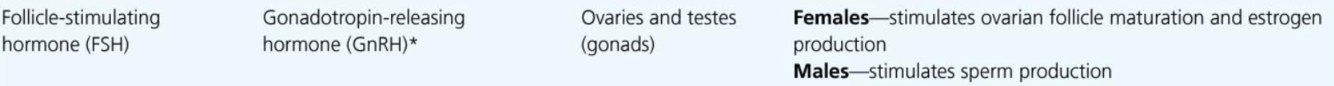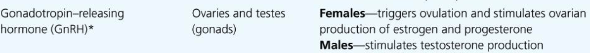 Zone name? Hormones? Stimulus for release? Target? Effect?