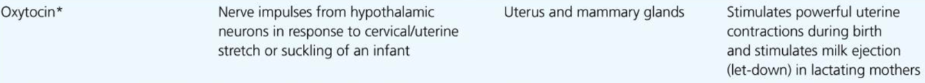 Stimulus for release? Target? Effect?