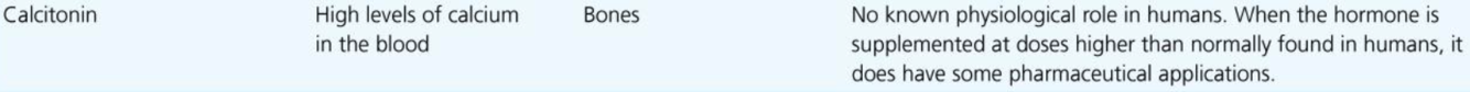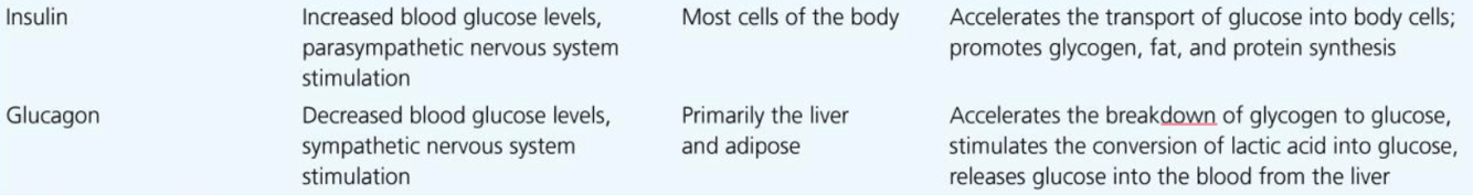 What cells? Hormone name? Stimulus for release? Target? Effect?