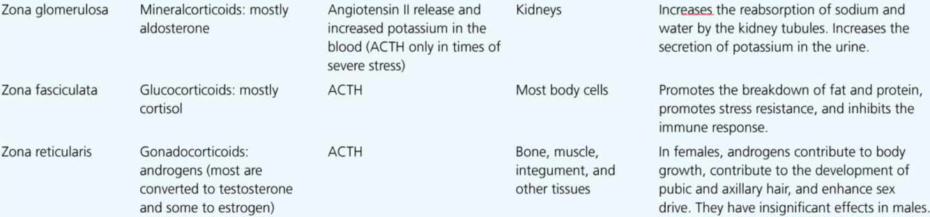 zona reticularis - gonadocorticoids (androgens) - masculine traits