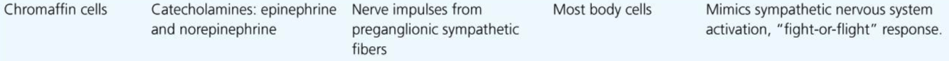 Adrenal medulla - adrenaline/epinephrine - for short term stress such as increased heart rate, vasodilation