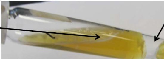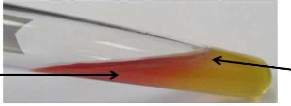 turns yellow due to the acid byproducts, indicating fermentation.
