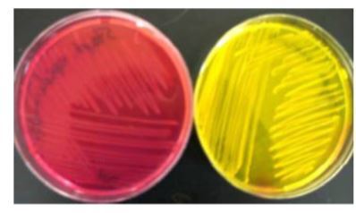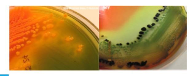 LEFT - Lactose fermentation - yellow-pinkish orange - ECOLI - COLIFORM