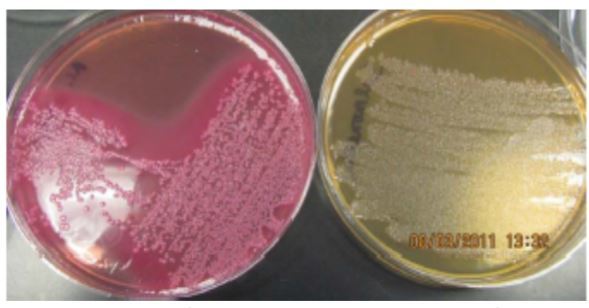 LEFT- Lactose fermination - E COLI - PINK