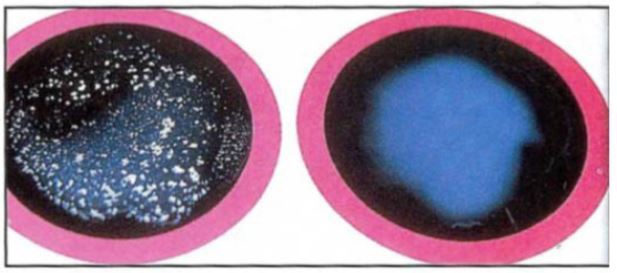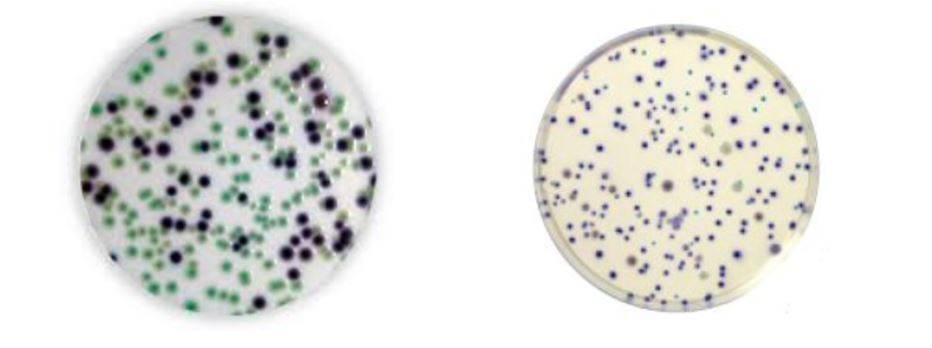 LEFT - Lactose fermentation - COLIFORM POSITIVE - PINK/PURPLE -ECOLI