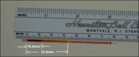 Total length of blood column in tube (mm) x 100 = % hematocrit