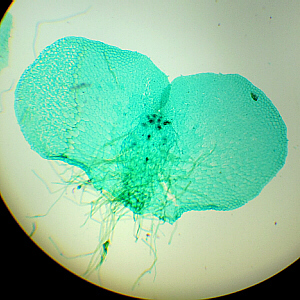 lenshaped outgrowths called gemmae that are another means of asexual reproduction. These are splashed off by falling raindrops. Used by mosses
