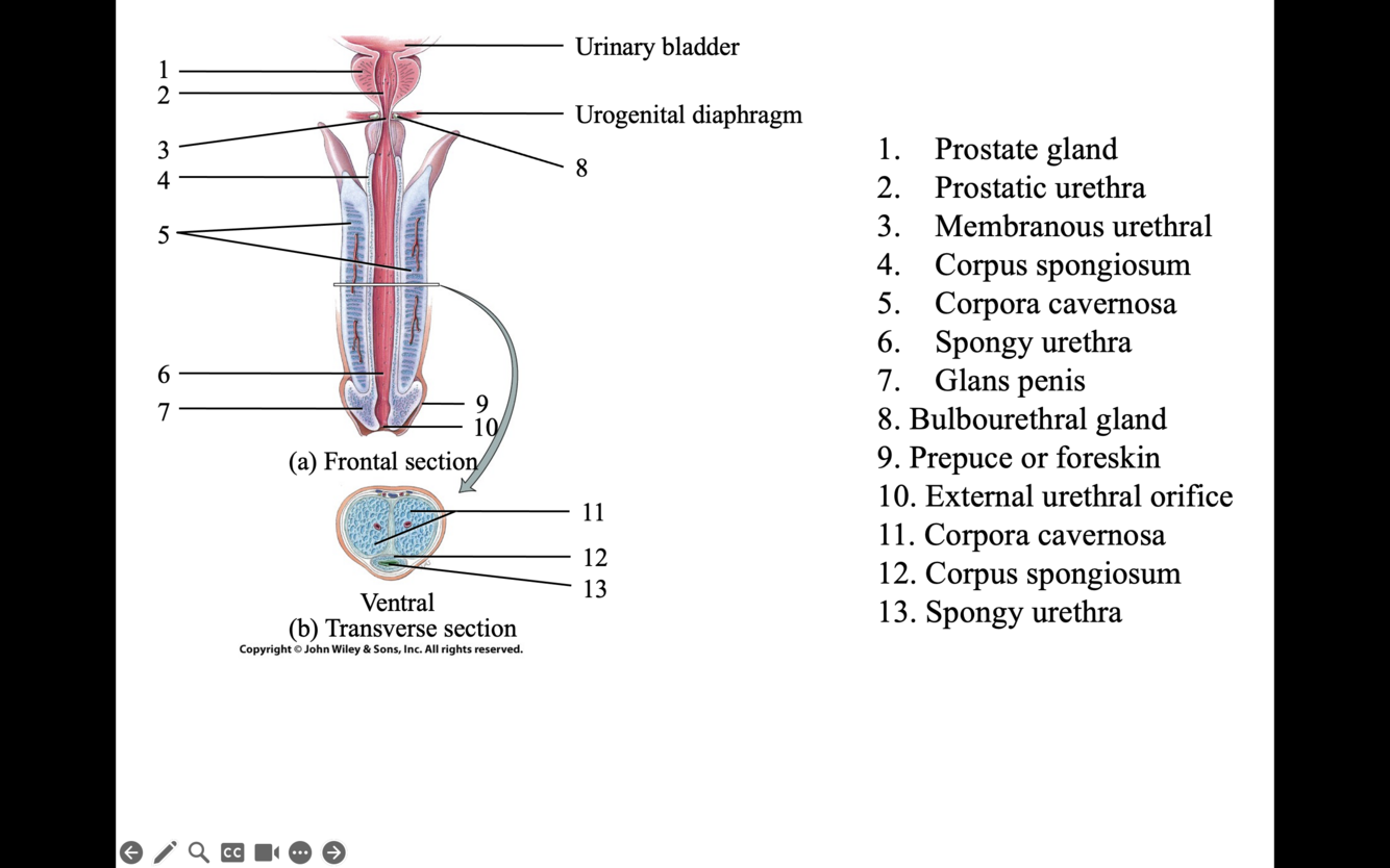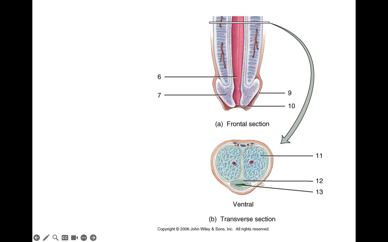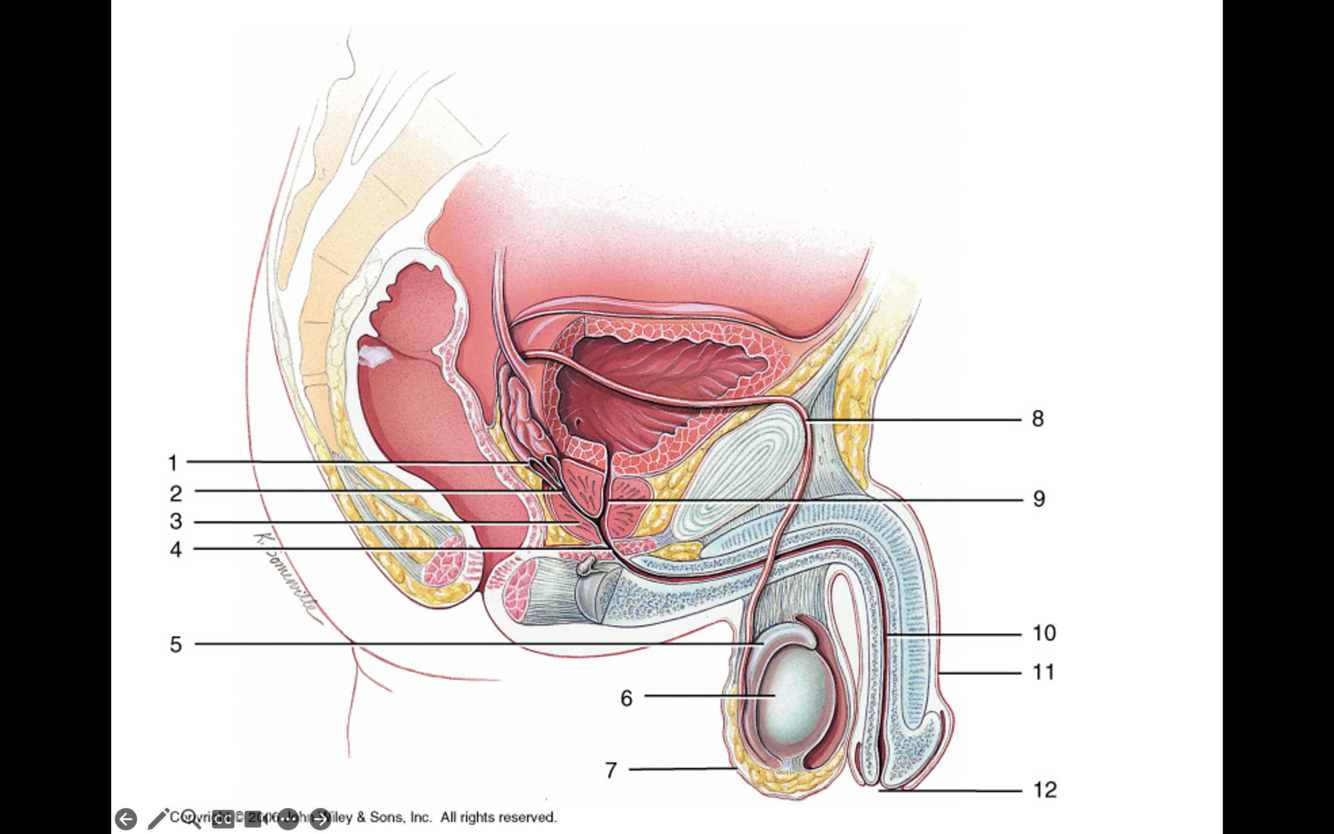 C. 4 and 12 Corpus spongiosum