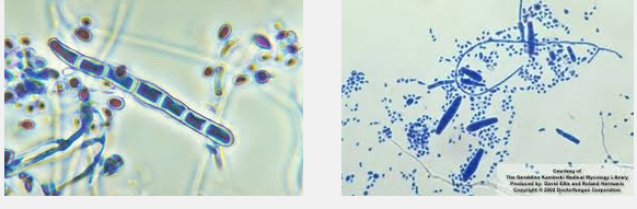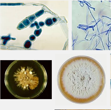 Growth- fast growing, colonies cover an agar surface with dense cottony growth, first white becoming grey or yellowish brown with sporulation.