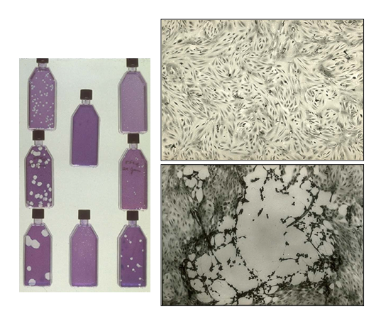 * When EFK cells are infected with EHV1- the virus multiplies in the first cell it infects then spreads to neighboring ones forming a “focus” of infection. These foci slowly spread or enlarge until the entire cell culture is wiped out.