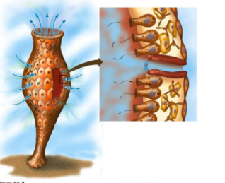 Water flow is an important aspect of any sponge’s life. The water flows in through the ____________, and out through the ____________.