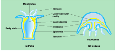 The body plan of cnidarians is composed of two cell layers, the epidermis (from ectoderm) and the gastrodermis (from endoderm). Therefore, these simple animals are triploblastic and have well developed organ systems.