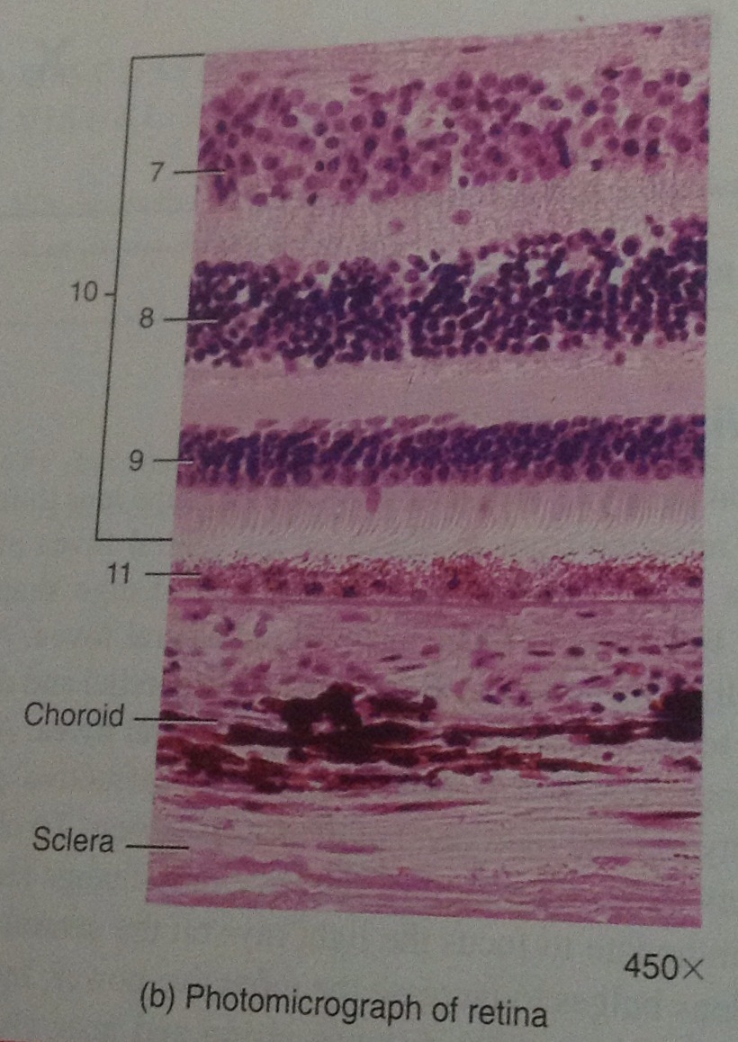 Microscopic anatomy of the retina. Define 9, 10, and 11.