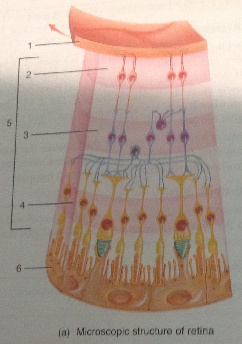 Microscopic structure of retina. Define 4, 5, and 6.