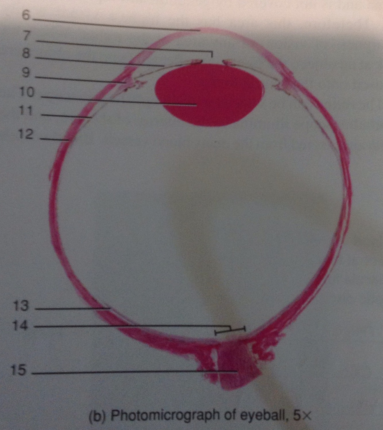 Photomicrograph of eyeball. Define 6, 7, and 8.
