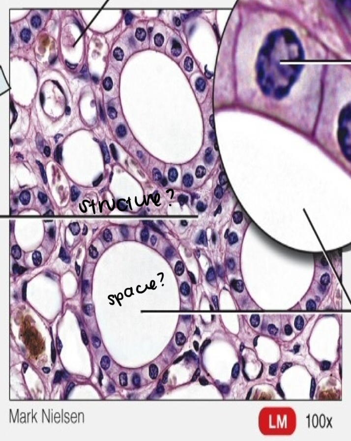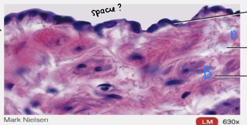 What is the type of tissue shown? What is the space indicated in the image? Where would you find it? What function does it have?