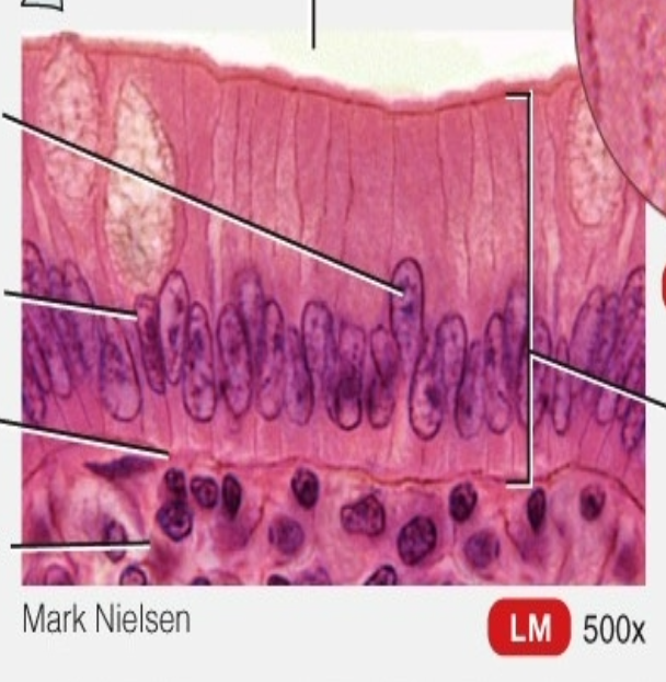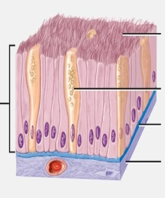 Goblet cells - modified columnar cells epithelial cells that secret music at their apical surface