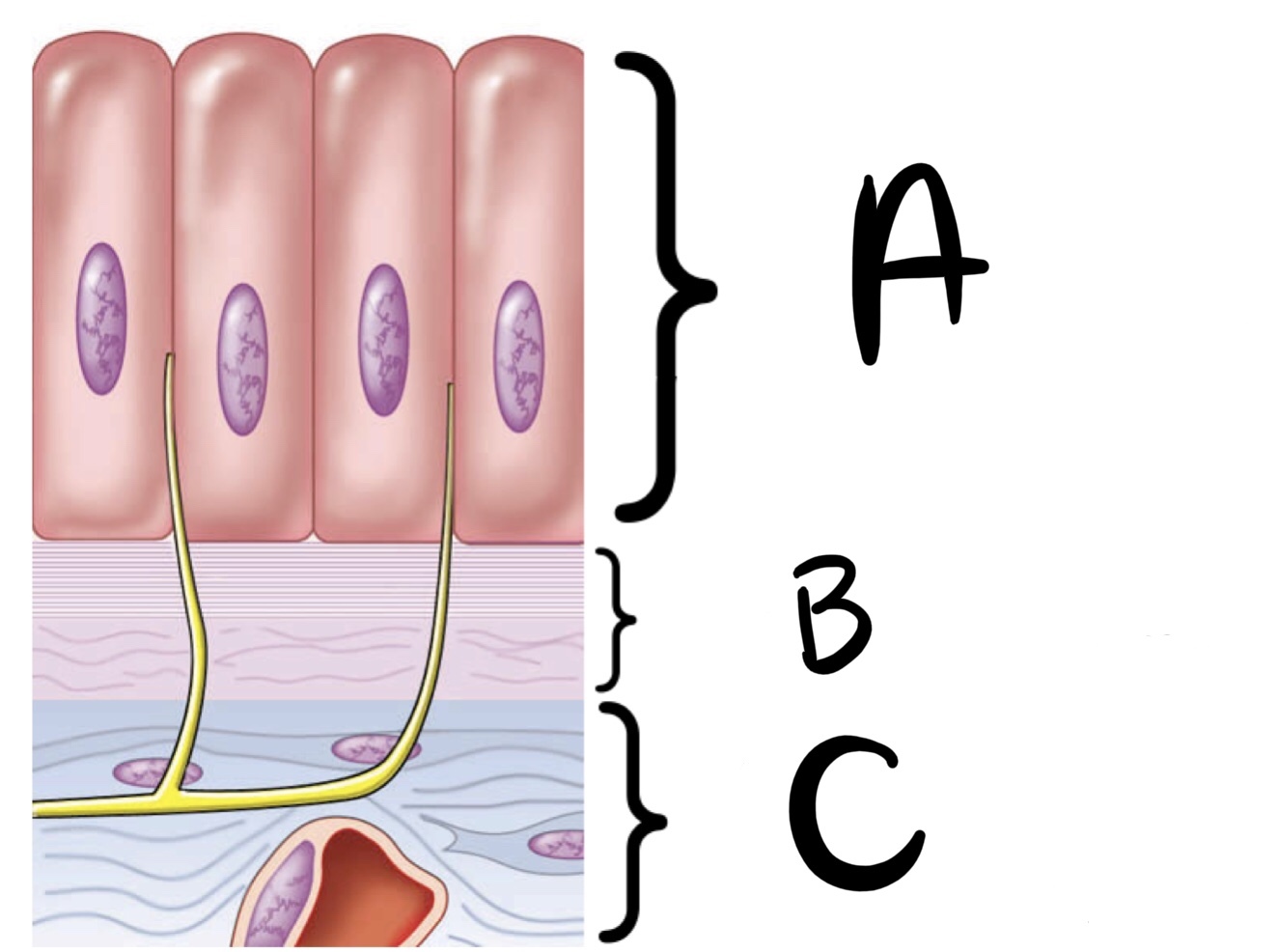 Identify A, B and C in the image.