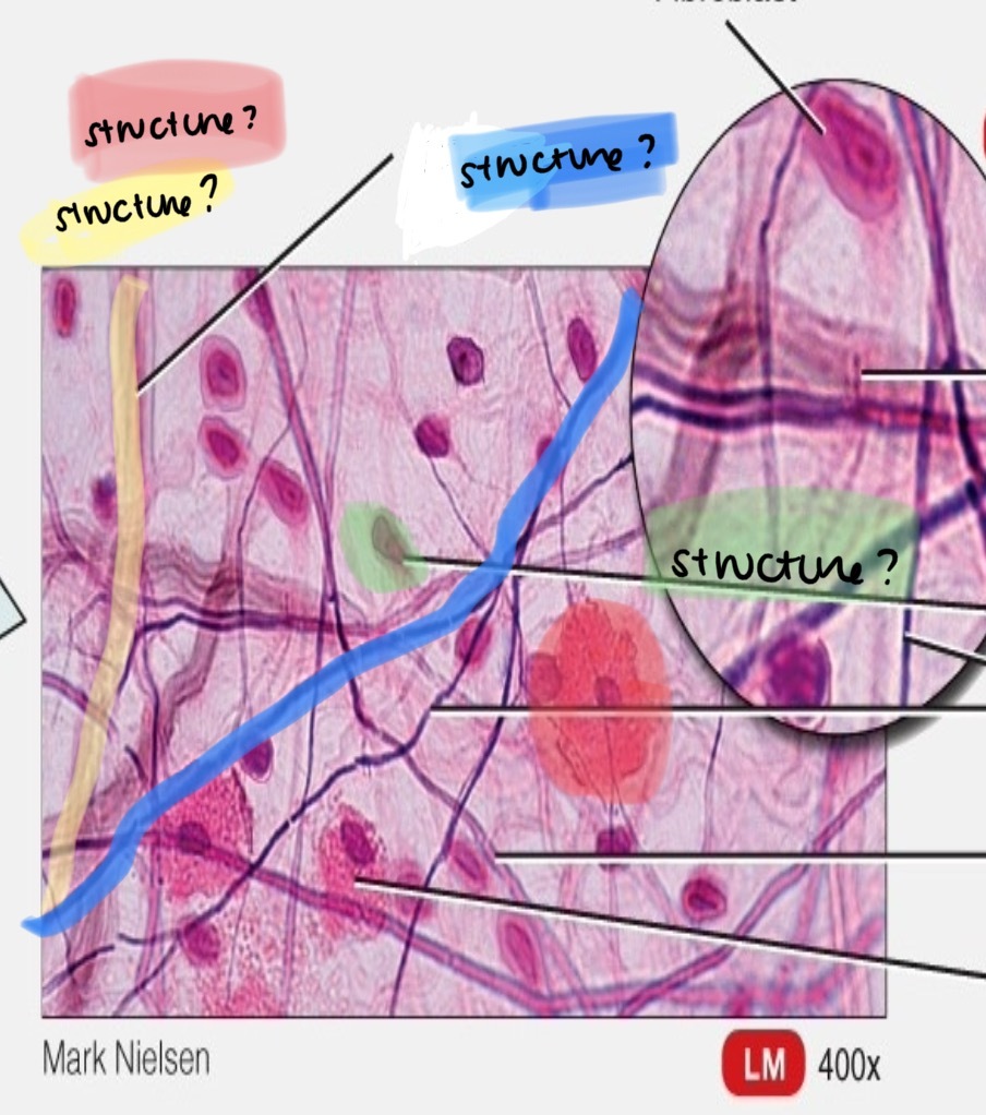 Blue - nucleus of fibroblast