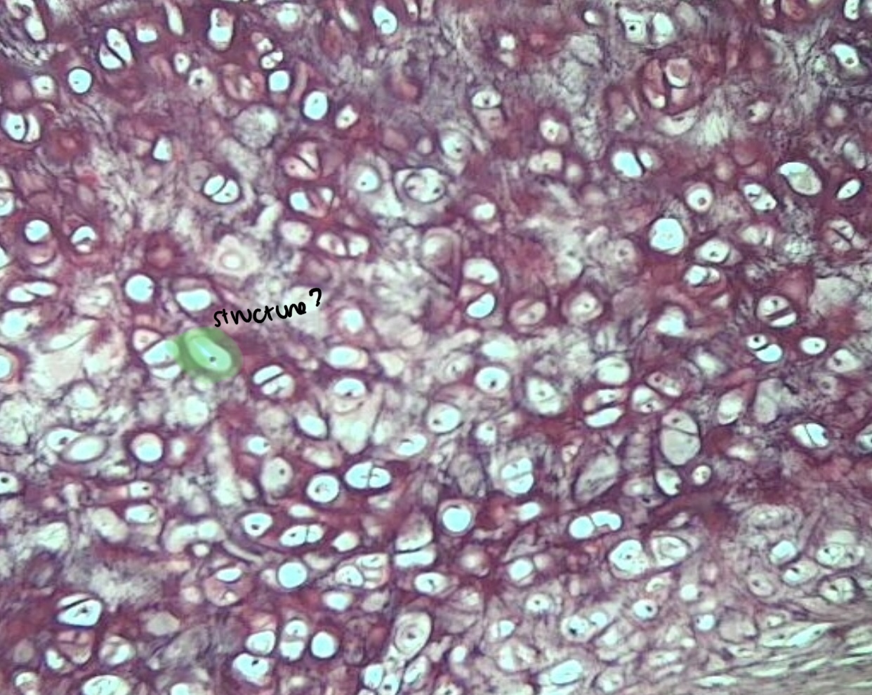 What kind of connective tissue is this? What are the circled structures? Where is it found? What is its function?