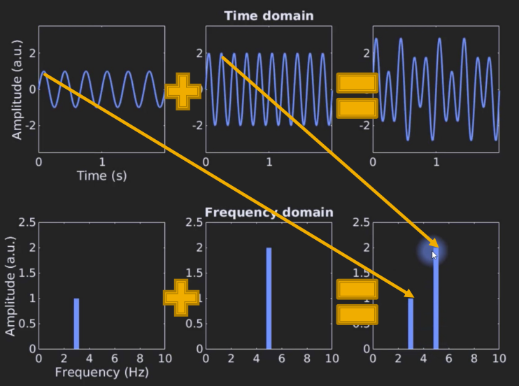 decomposes a signal into a complex spectrum that, for each frequency, has an amplitude (real) and a phase (imaginary)
