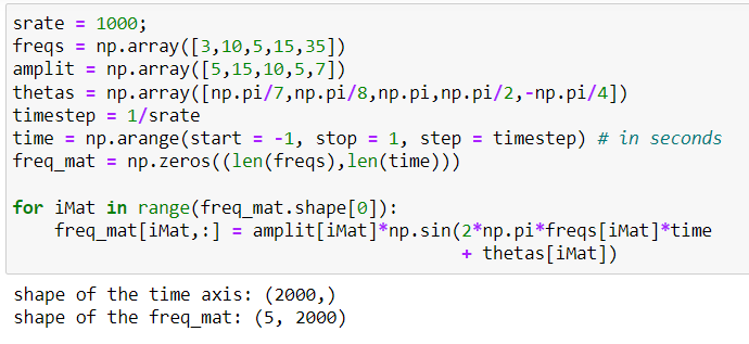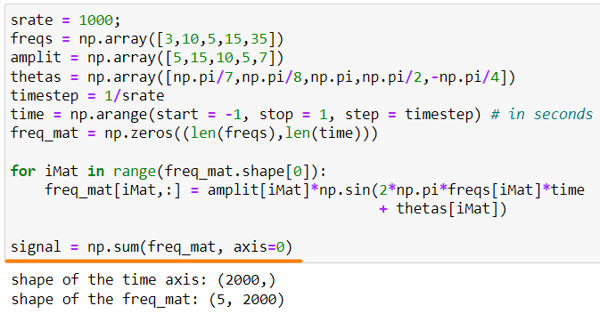 create a matrix of simulated signals