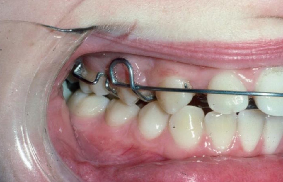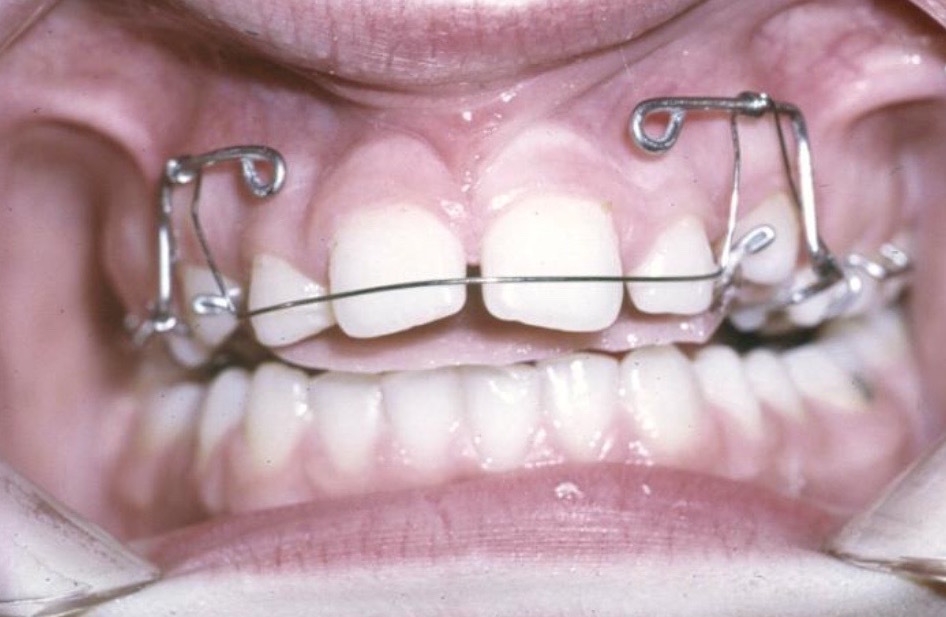A largely horizontal wire labial to the incisor teeth