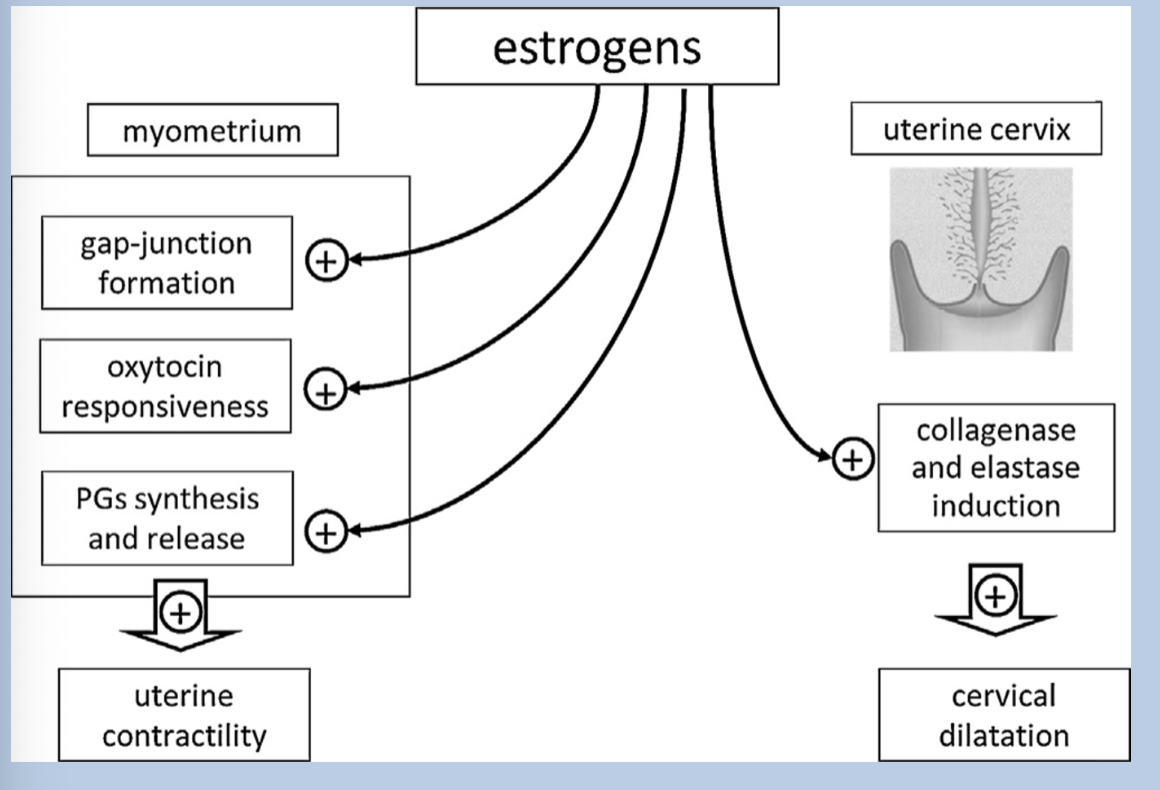 => the hormonal changes don’t only induce contractility some hormones / factors such as relaxin and collagenase and elastase induce dilation