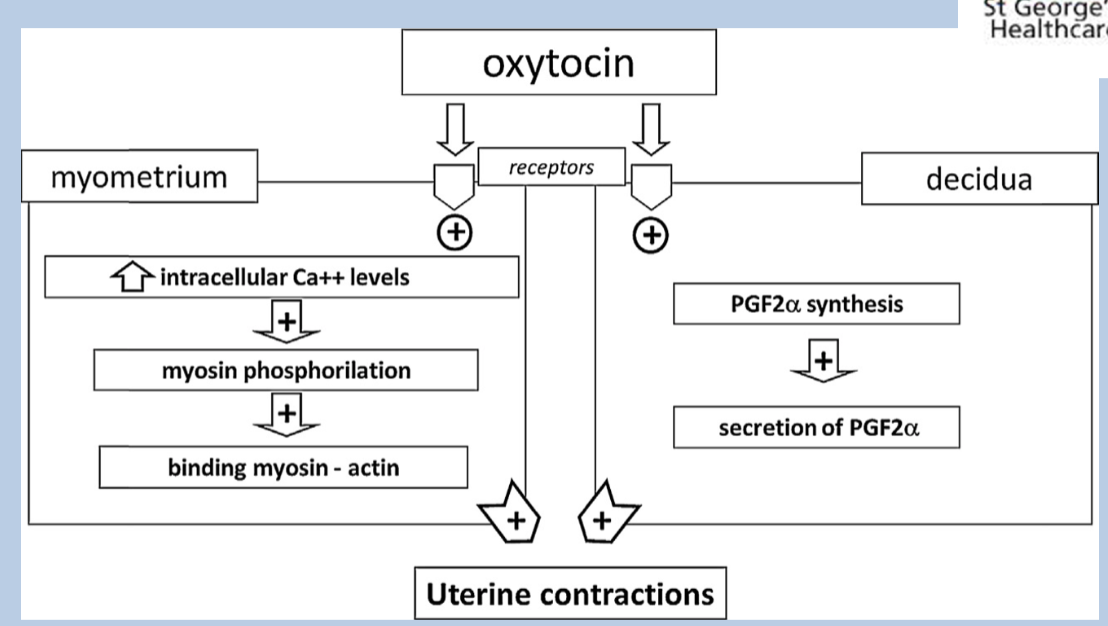 3 .How does oxytocin induce myometrial changes in labour?