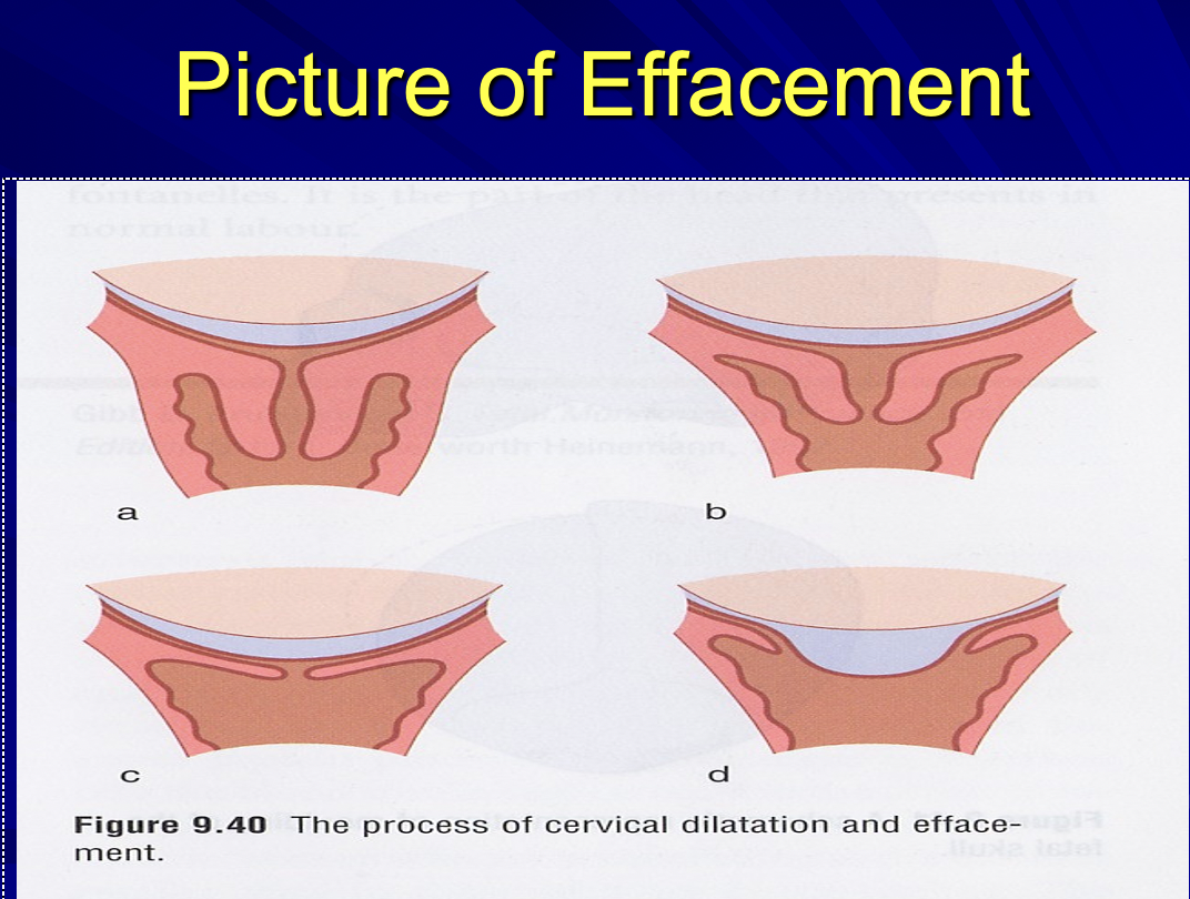 Note that 1st contraction ≠ labour- only when regular, painful contractions are occurring 5 mins apart