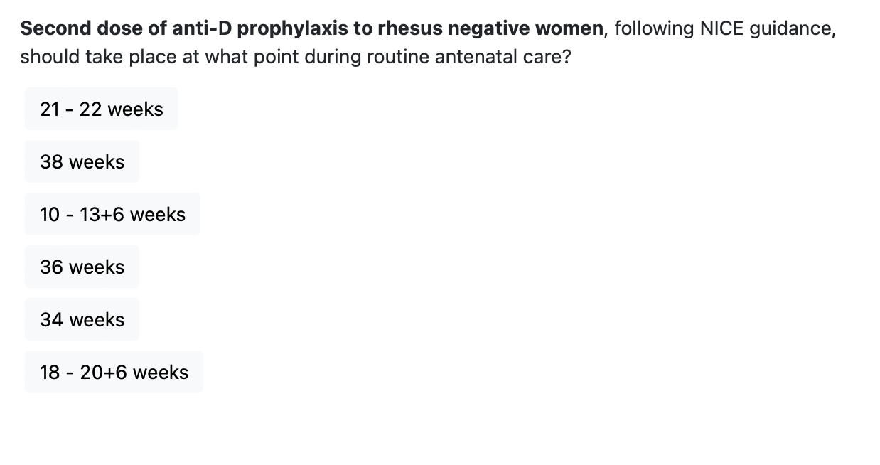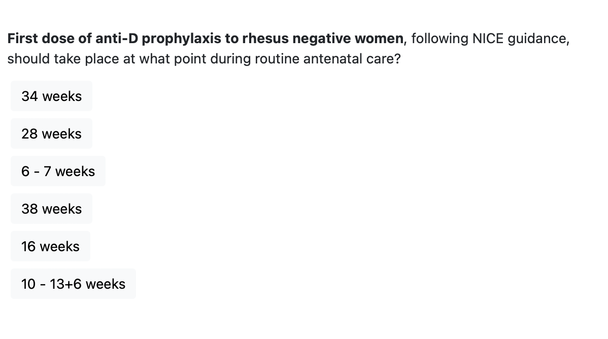 * first dose of anti-D prophylaxis to rhesus negative women