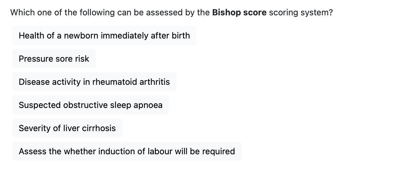 Bishop score - assess the whether induction of labour will be required