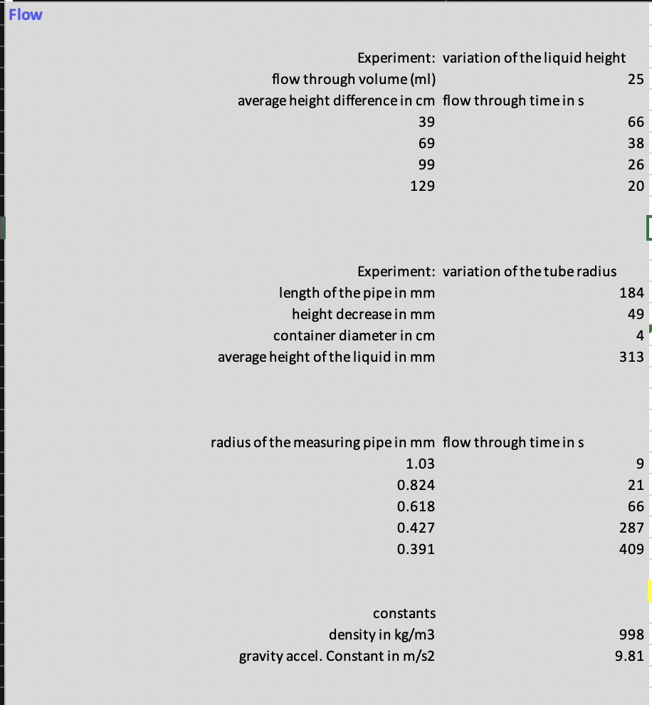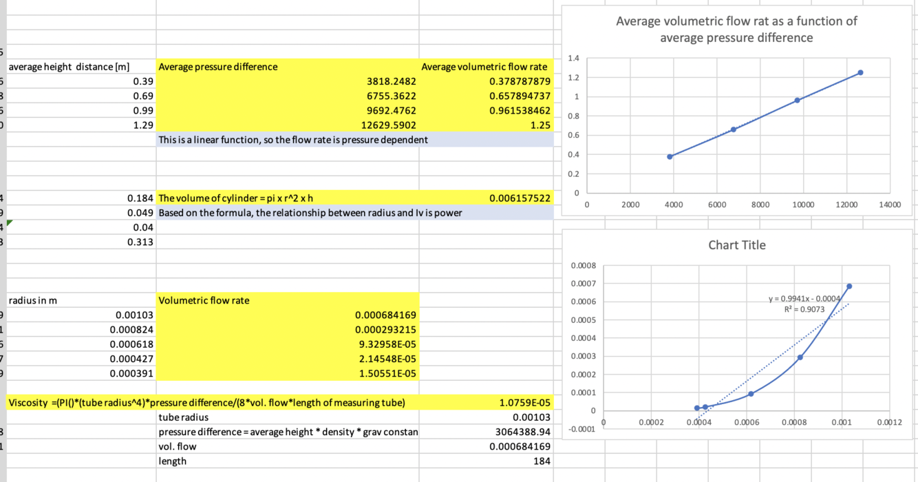 (2) Find the viscosity = (pi x r^4 x pressure difference)/(8 x Iv x length of measuring tube)