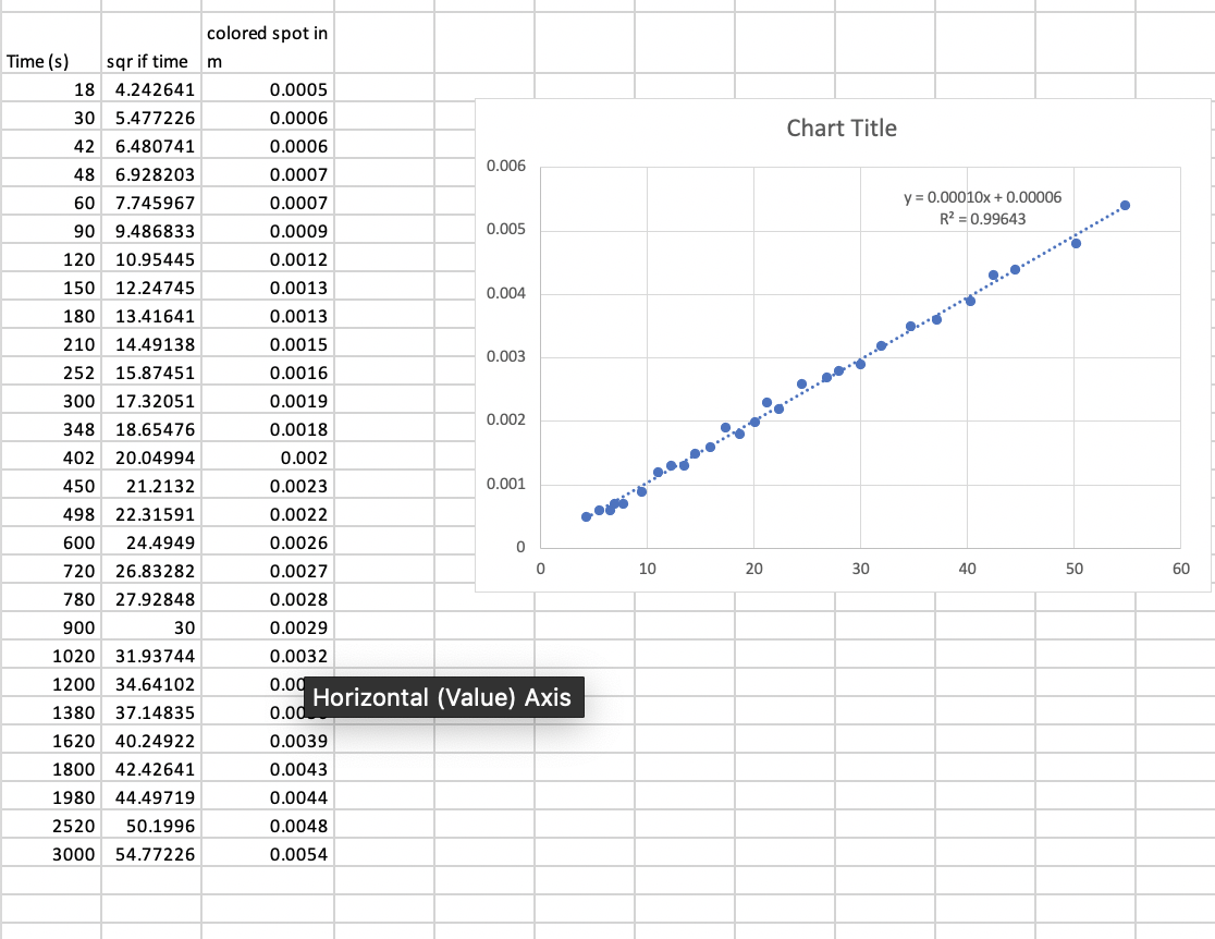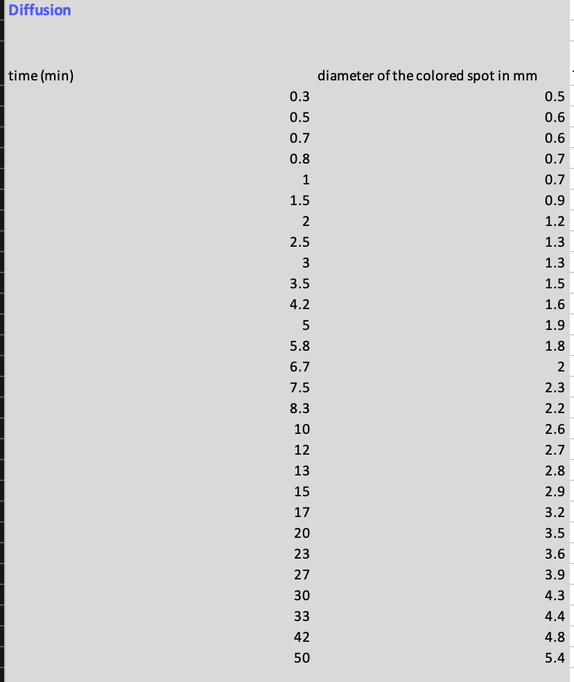Find the time needed to for the diffusing molecules to cover on average a distance of 2.4 mm!