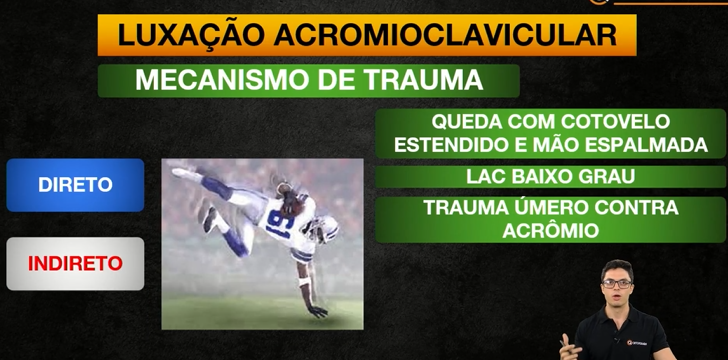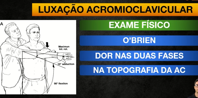 Força em adução, tentando impactar o acrômio na clavícula lateral com outro braço