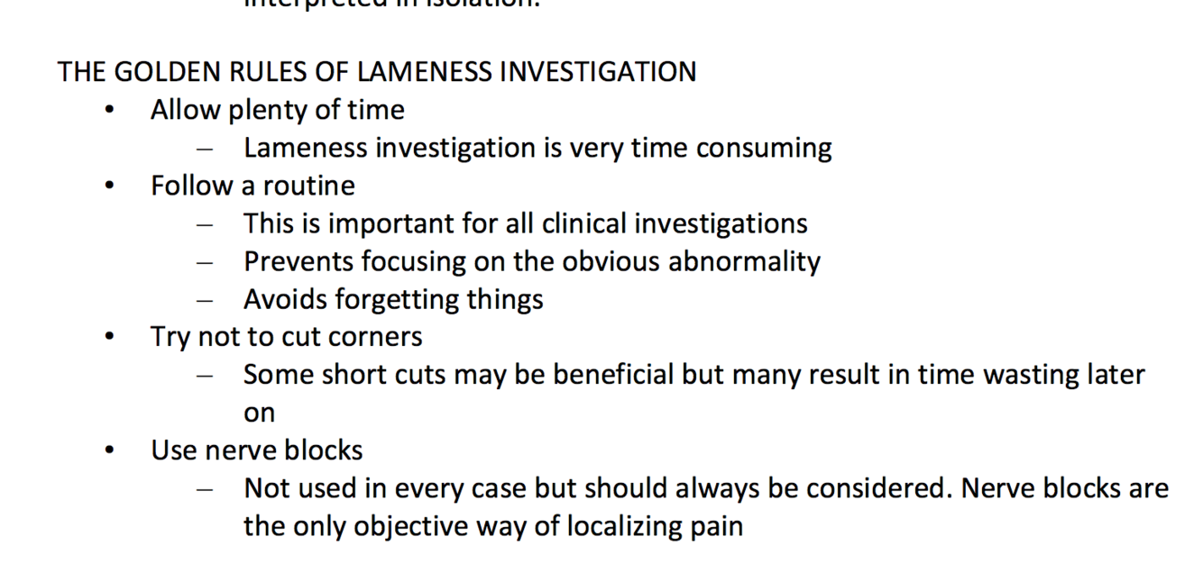 Golden rules of a lameness exam?
