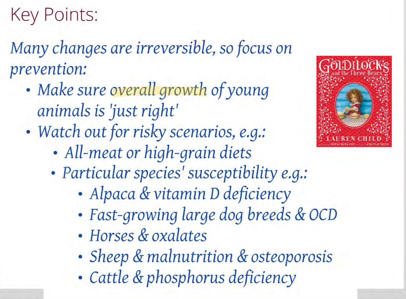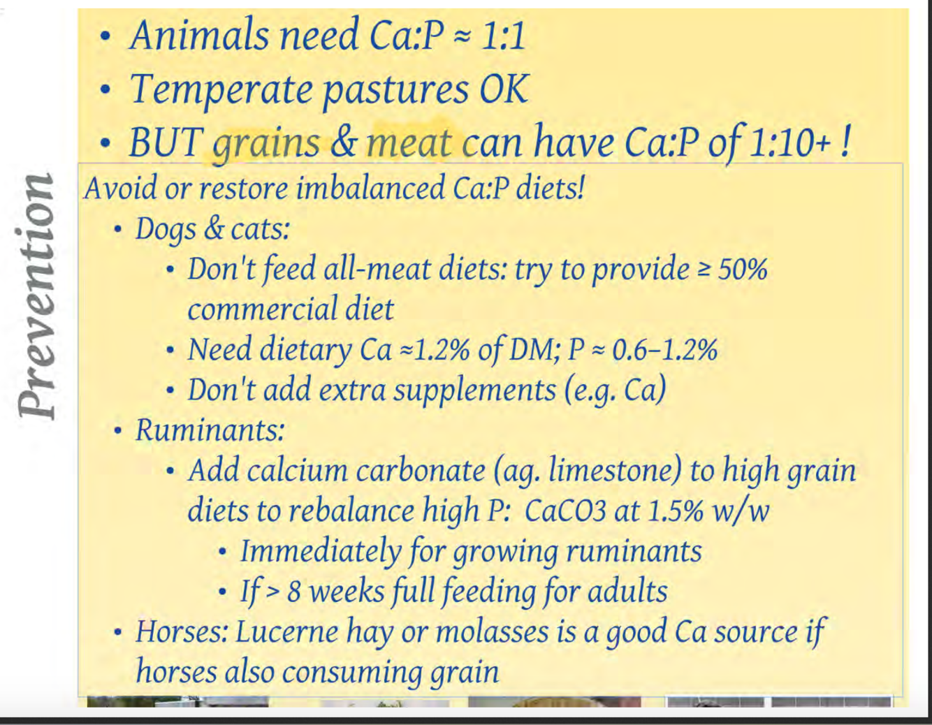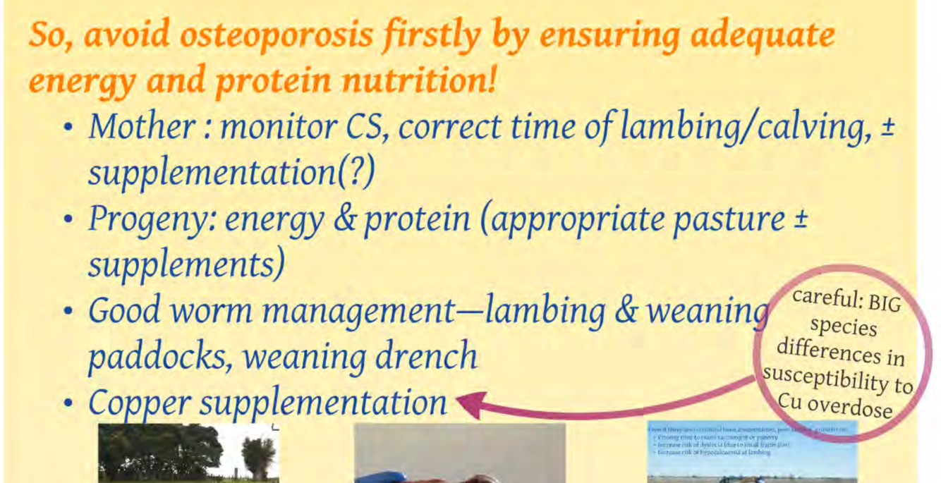 Avoid rachitogenic factors (anti vit D) and high NH4 (antagonises dietary Ca absorption) e.g. in oat crops