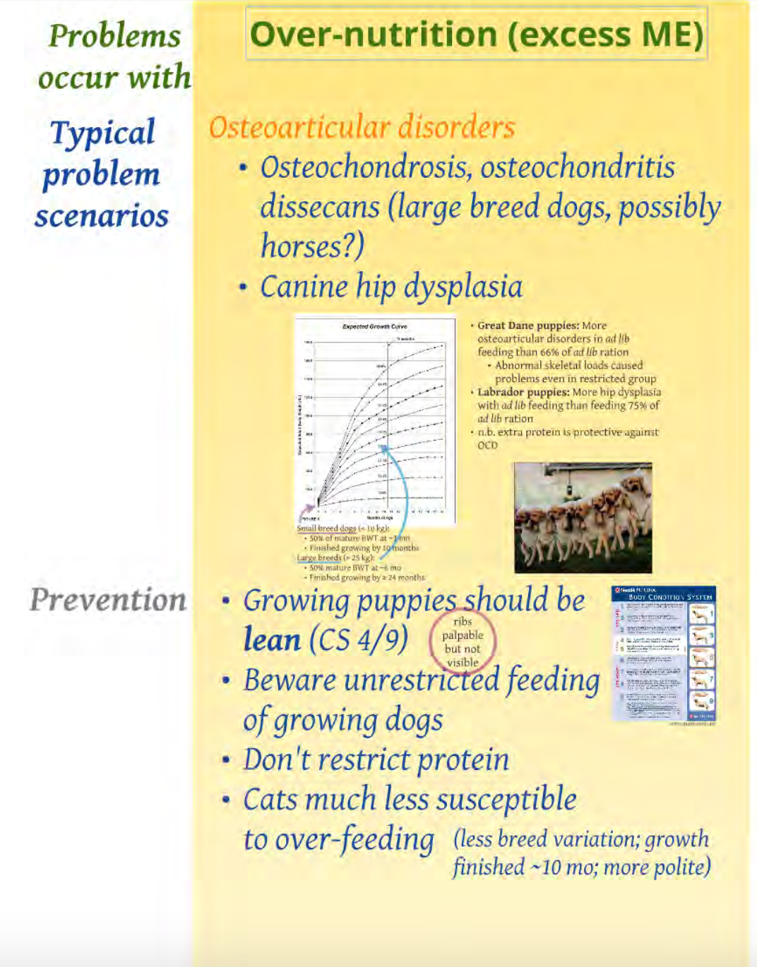 Typical problem with over nutrition (excess ME)