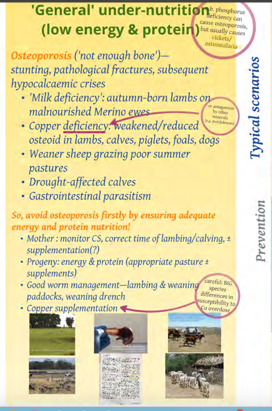 ** aetiological associations: decreased copper supplementation, increased use of molybdenum in fertilizer mixes causing a relative reduction in copper availability, wet conditions and/or an increase in grass dominance on pastures leading to more abundant molybdenum, soil factors such as high iron/calcium/sulphur tying up copper and possible impact of increased use of mechanical sheep handlers